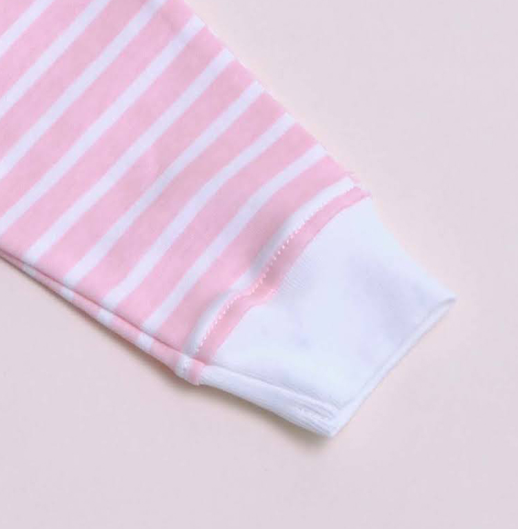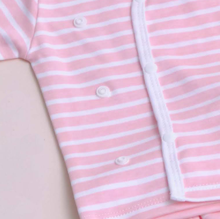 Bộ dài nút cài lệch sọc trắng hồng