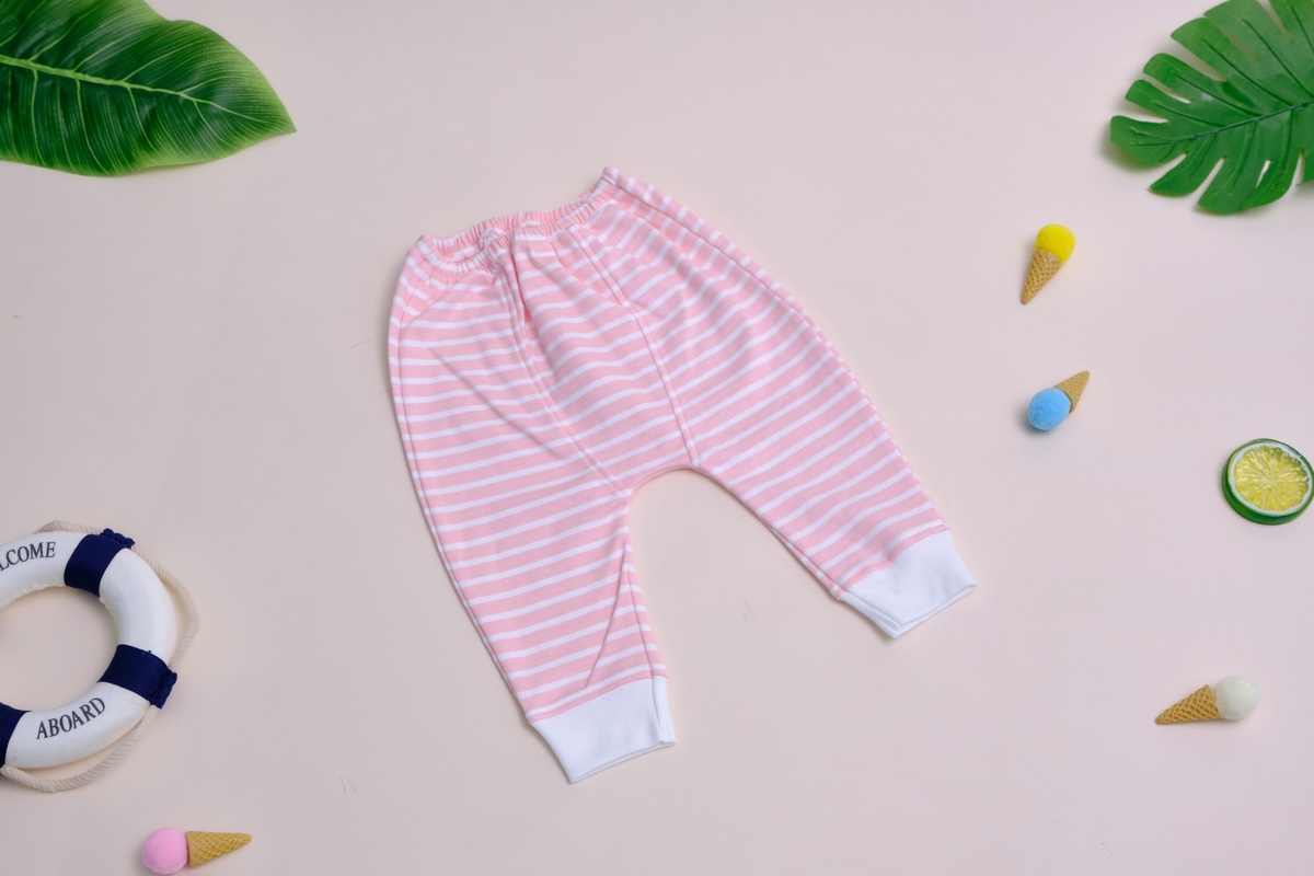 • Quần chun quần co giãn tốt, đáy quần may rộng thích hợp để bé mặc tã bên trong mà vẫn thoải mái.